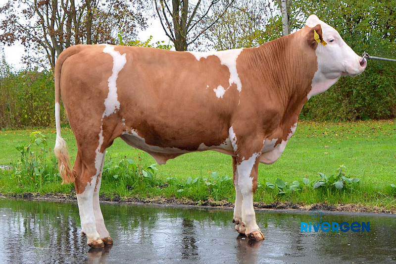 Der hornlose Mahindra PS-Sohn MASCHINE PS 855931 ist aus einer beeindruckenden Ephraim-Tochter gezogen. Sie ist enorm körperhaft und mit einem sehr schönen Euter versehen. Ihr Sohn MASCHINE PS vererbt viel Milch (A2A2), einen durchschnittlichen Fleischwert und beste Fitness. Der vermutlich leichtkalbige Jungbulle bringt langlebige, fruchtbare und sehr eutergesunde Töchter. MASCHINE PS-Töchter werden großrahmig und sehr gut bemuskelt sein. Ihre stabilen Fundamente sind etwas steiler und gröber und mit sehr straffer Fessel ausgestattet. Die insgesamt schönen Euter sind sehr gut in die Bauchdecke angebunden und hoch. Die langen Zitzen bei optimaler Dicke machen MASCHINE PS zu einem interessanten Anpaarungspartner für viele Kühe.