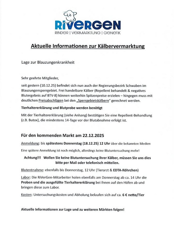 Der RiVerGen e.V. ist seit dem 19.09.2023 der neue Verein in der Fleckviehzucht. Er ist ein Zusammenschluss des Zuchtverband für das Schwäbische Fleckvieh e.V. Wertingen und dem Besamungsverein Nordschwaben e.V. in Höchstädt.