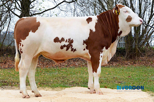 Mit HERAX PP können wir einen reinerbig hornlosen Sohn unseres Exterieurspezialisten Herakles PS präsentieren. HERAX PP-Töchter bringen einen ordentliche Milchleistung bei knapperen Inhaltsstoffen. Ein guter Fleischwert und eine ausgeglichene Fitnessvererbung komplettieren das Vererbungsprofil dieses Allrounders. HERAX PP-Töchter sind sehr groß und sehr gut bemuskelt. Die ideal gewinkelten Fundamente sind etwas gröber, aber mit sehr guter Fessel und Tracht ausgestattet. Die Euter besitzen eine sehr gute Voreuteraufhängung und sind sehr hoch. Die Zitzen sind ideal ausgeprägt.